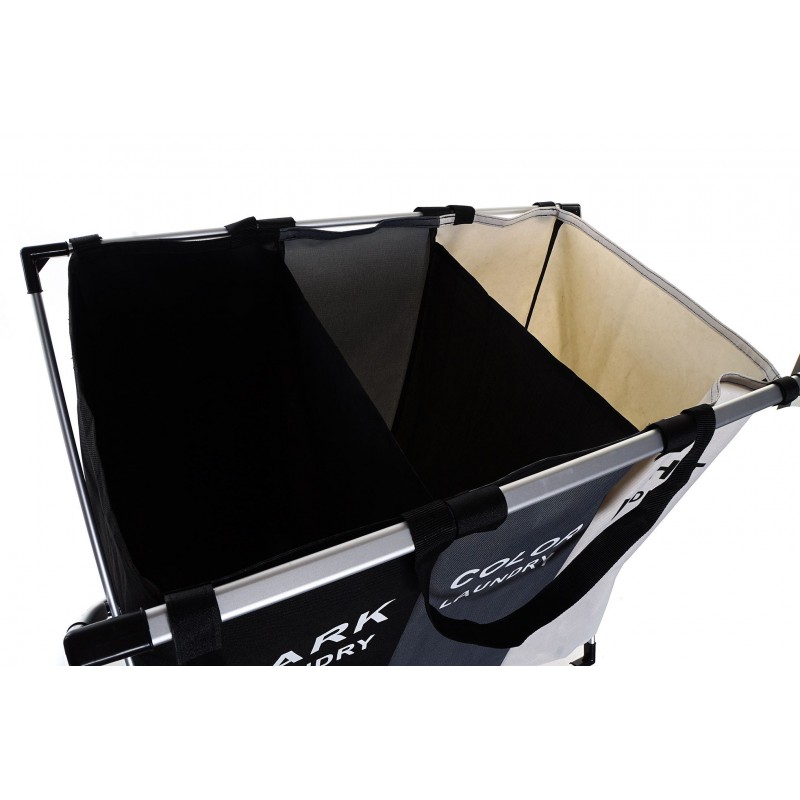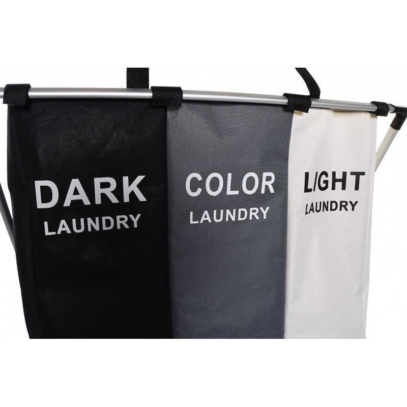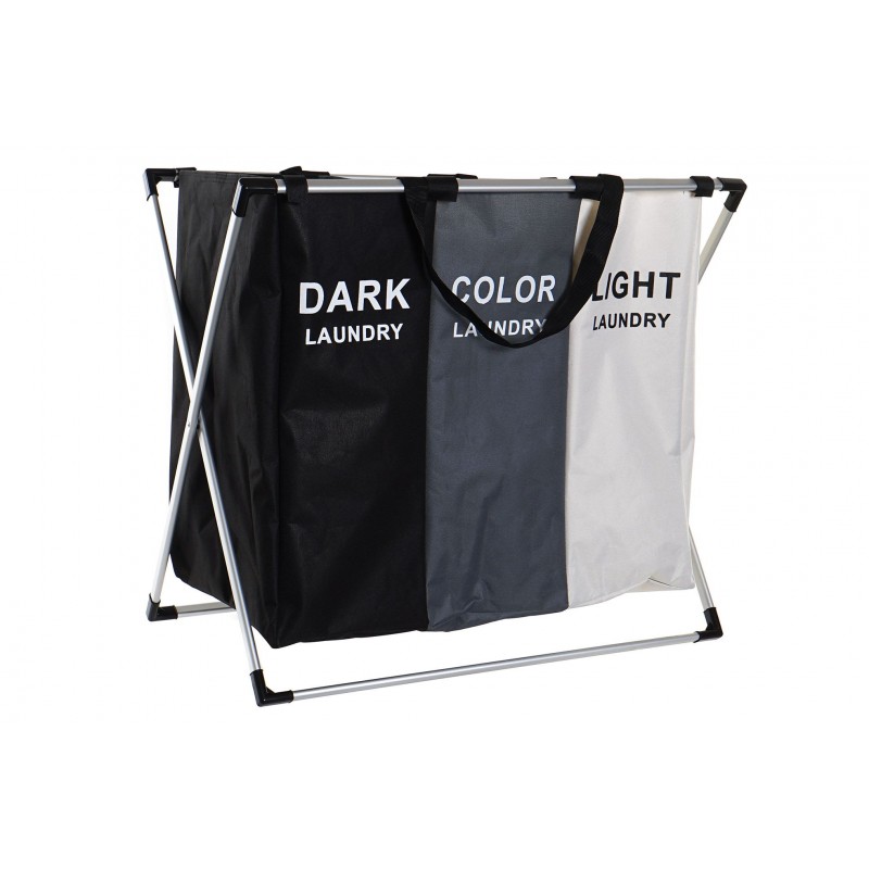 Cesta clasificadora para la ropa o colada con tres compartimentos.